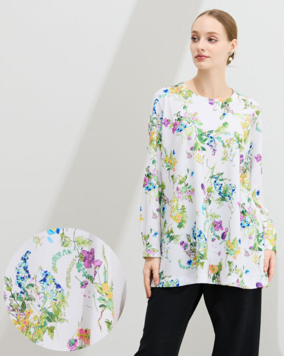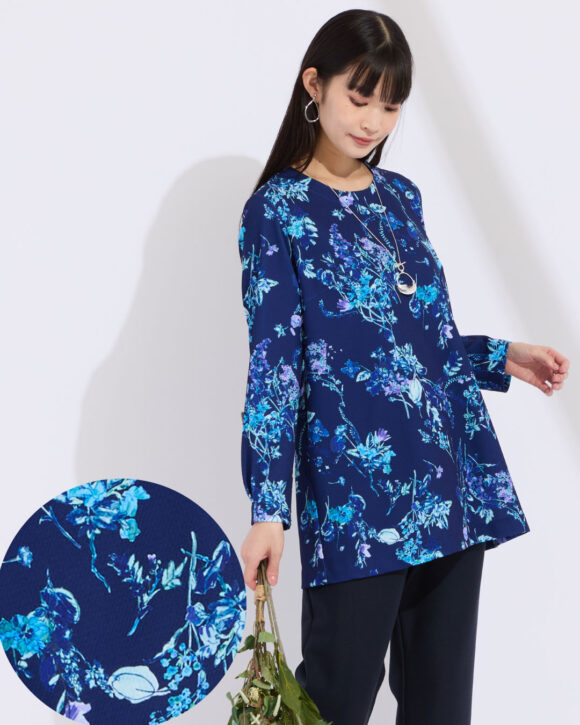華やかさと上品さを兼ね備えたフラワープリントチュニック。