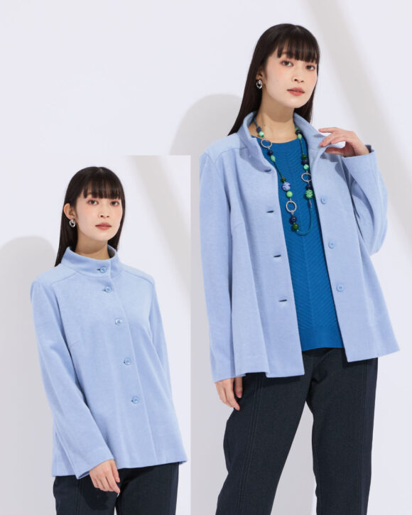 ふんわりとした起毛感で暖かみのある軽やかコート。伸縮性に優れたフライス素材の上、保温性にも優れており寒くなる季節にも頼りになります。