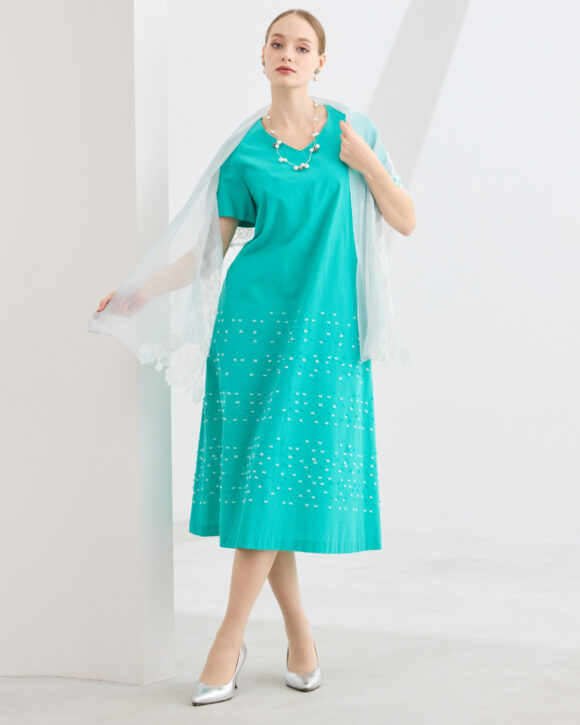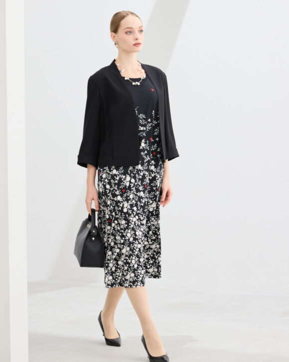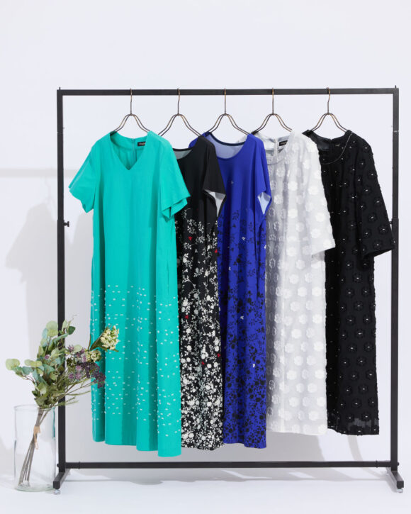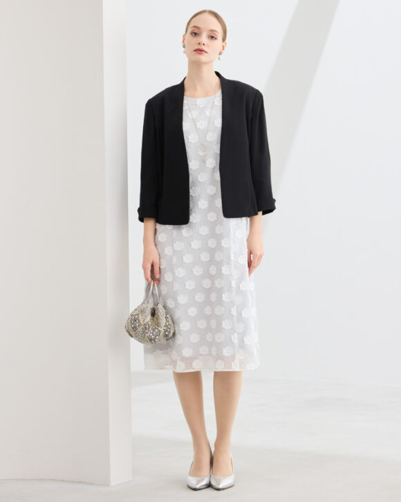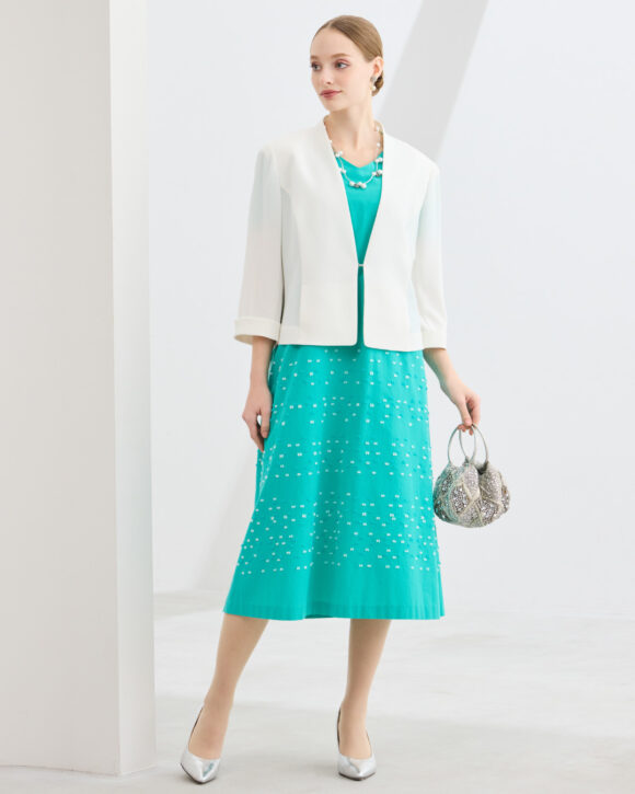 今シーズンはドレスアイテムを充実。ボレロとのコーディネートをご用意しています。