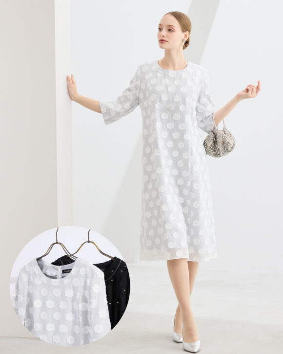 美しく可愛らしさのあるフラワージャカードドレス