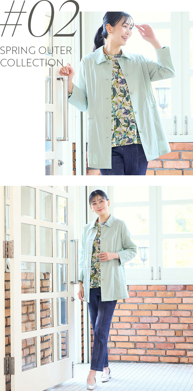 パンツスタイルにもスカートスタイルにも合う着丈も魅力。この春活躍間違いなしのアウターです。