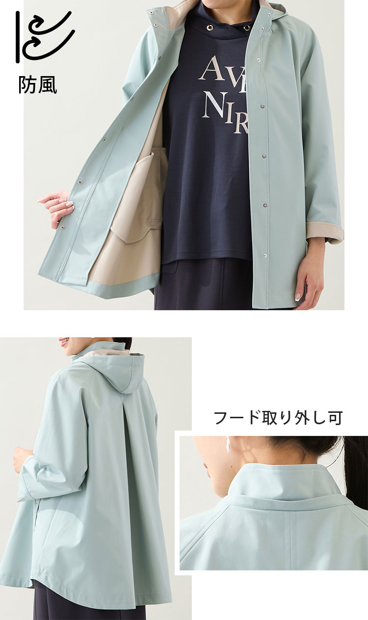 お腹やヒップラインをカバーできるAラインシルエットも可愛い♡フードはファスナーで簡単に取り外しが可能です。