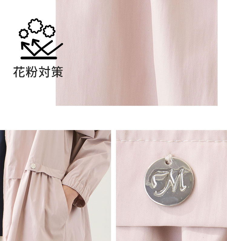 花粉が付きにくく、付いても落ちやすい機能性素材のジャケットは花粉症の方に是非おすすめしたいアイテム。さらっとしたパウダータッチで、カジュアル過ぎないきれいな素材感も特徴です。