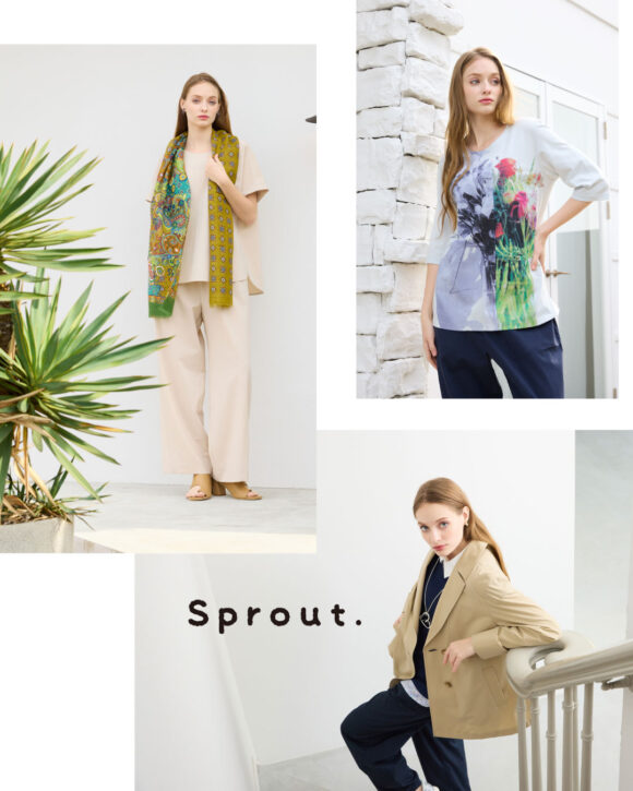 カジュアルラインのスプラウト。大人にも着こなしやすい程よいこなれ感あるスタイルです。