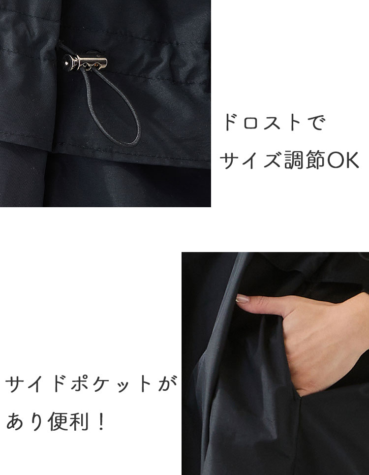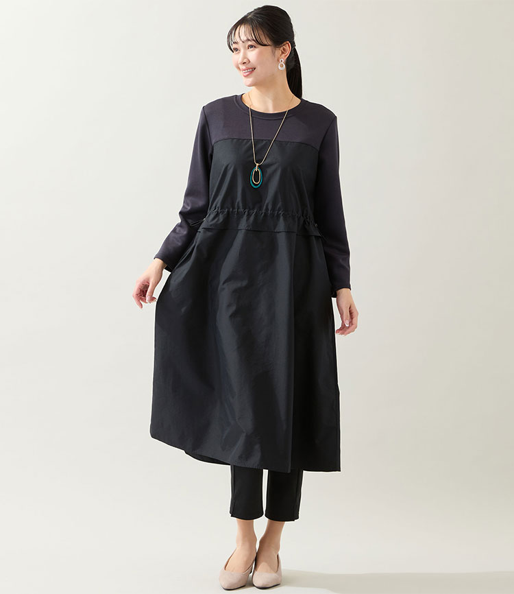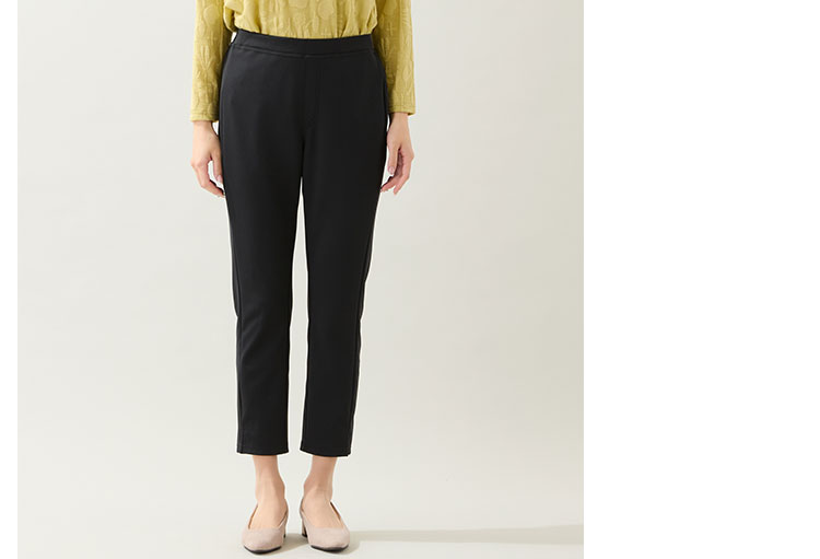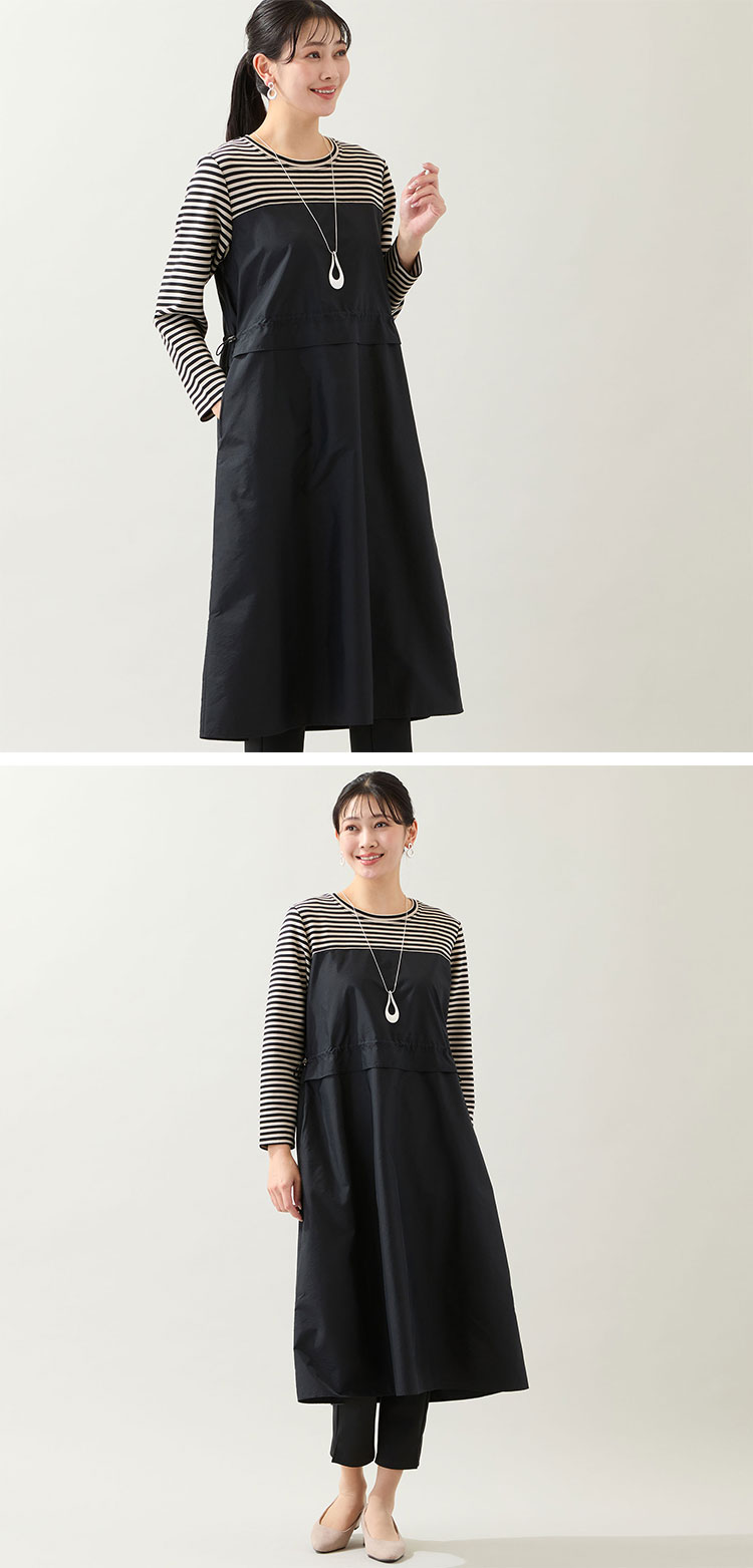 ウエスト上の切り替えで視線が上がり、スタイルアップ効果大◎脇のドロストでウエスト幅の調節が可能です。