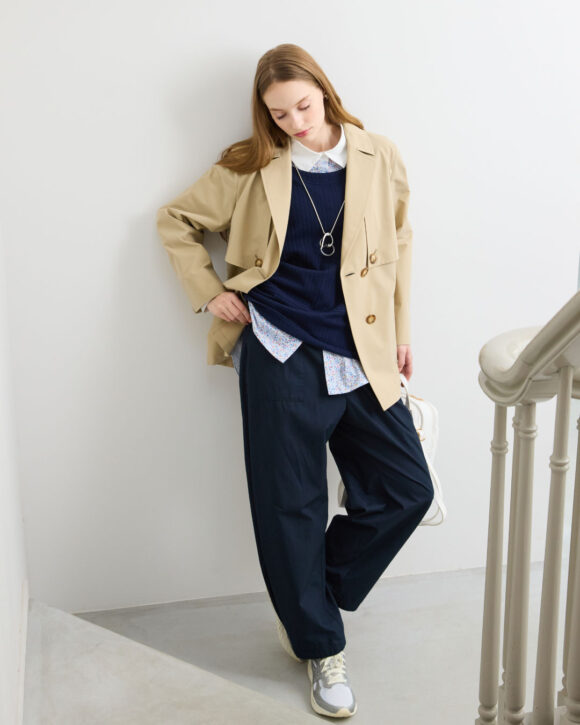 トレンチ風ジャケットを羽織ってこなれ感ある大人のカジュアルスタイルに。