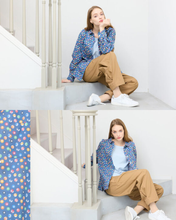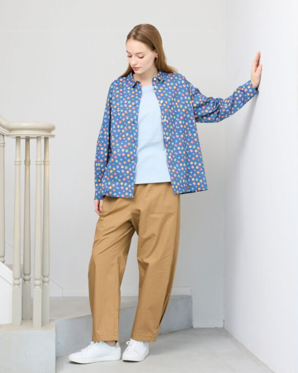 遊び心のあるプリントがかわいいインポート素材シャツ。