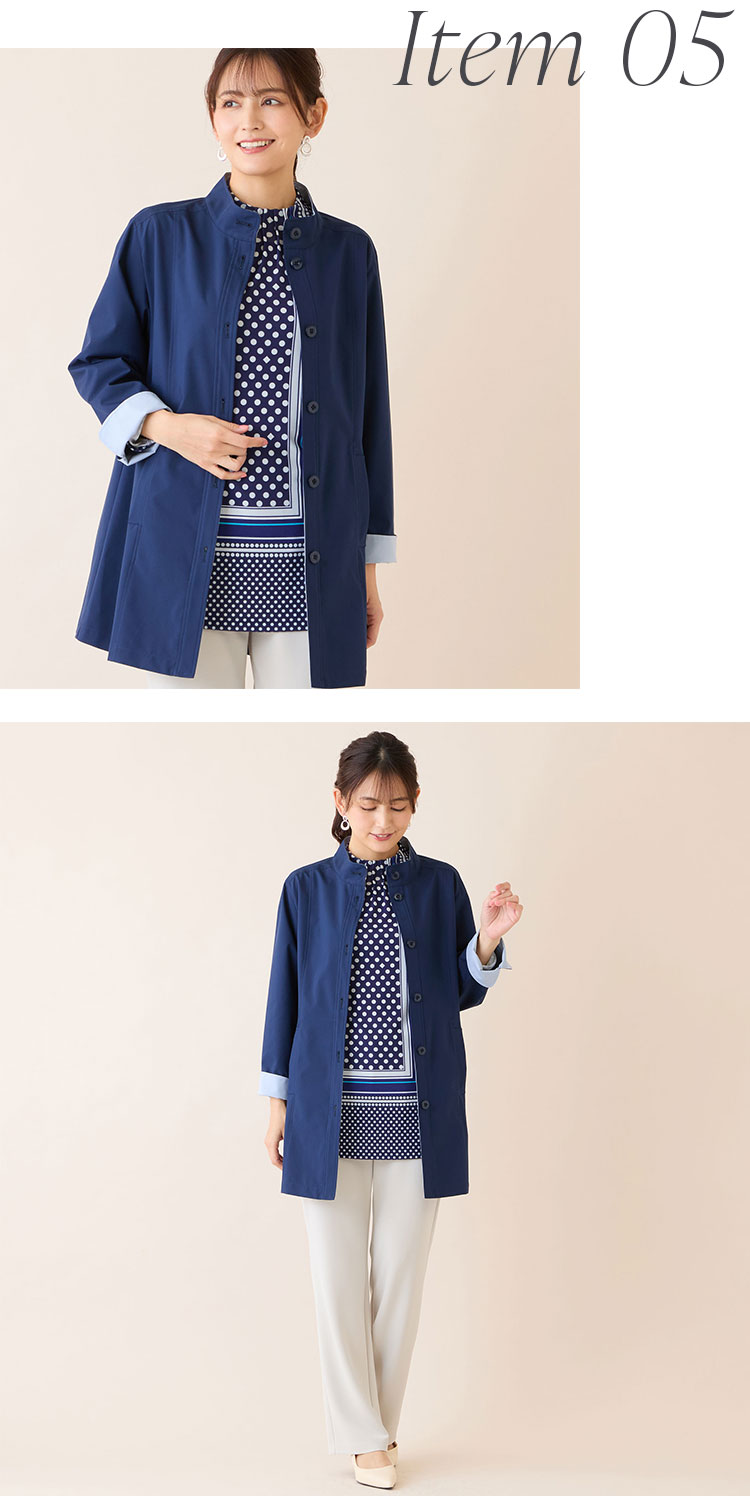 カラーはダークブルーとベージュの2色展開。ぜひ袖口を折り返して着こなしてくださいね。