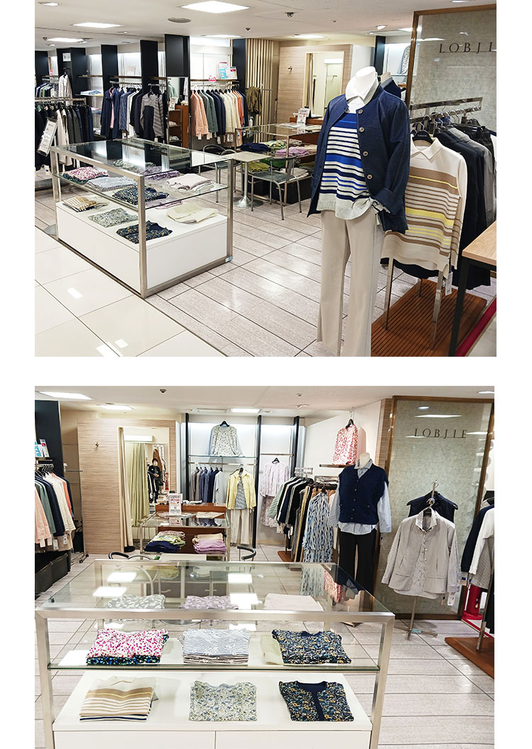 ロブジェは本館4階にオープン。弊社Lサイズブランドの「ミゼール」と併設して展開しております。