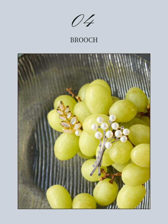セレモニーやハレの日はもちろん、普段の着こなしにも。衿元にプラスするだけで華やかさと女性らしさを添えるきらめき感と清潔感のあるアイテム。