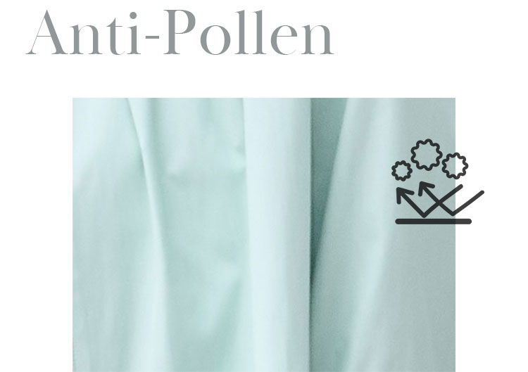 東レが開発した高機能花粉対策素材「アンチポラン」は、繊維間に花粉が入り込みにくい特殊な織物構造が特徴。つるっとした生地感が上品で、カジュアルだけでなくきれいめな着こなしにもマッチします。