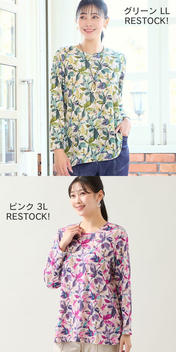 テレコニットリーフ柄カットソー