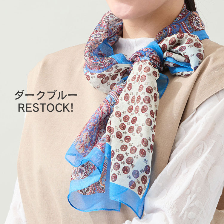 人気の涼感ストールが再入荷!色が効いた小紋柄が首回りをエレガントに演出します。