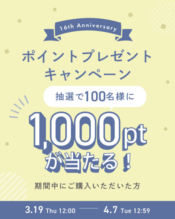 2026.03.19 【ピサーノ】本日から!ポイントプレゼントキャンペーン 感謝祭企画 | 抽選でポイントプレゼントキャンペーン みなさまのご愛顧に感謝してとってもお得なイベントが目白押し!特別なこの期間をお楽しみください。 キャンペーン期間 2026年3月19日(木) 12:00 – 2026年4月7日(火) 12:59 キャンペーンの詳しい情報はこちらからご覧ください↓ JUNIOR ONLINESHOP 16周年感謝祭情報はこちらをご覧ください↓ ピサーノブランドページはこちらから → ———— ニュース一覧 VIEW MORE →