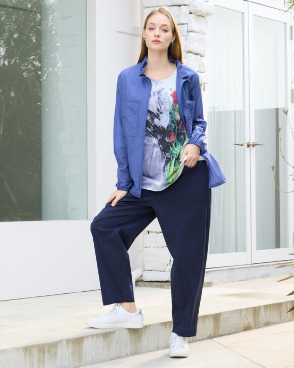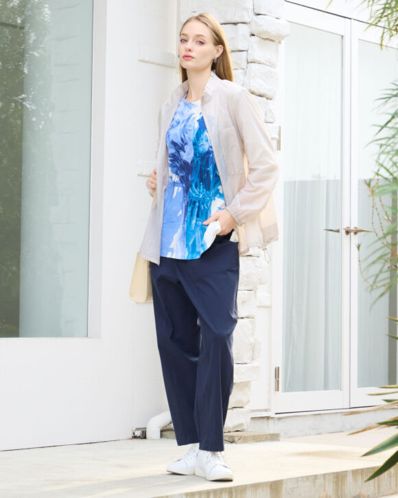パンツは窮屈感のないシルエットに加え、ストレッチ◎。座ったり立ったりがらくちんで動きやすさ抜群。