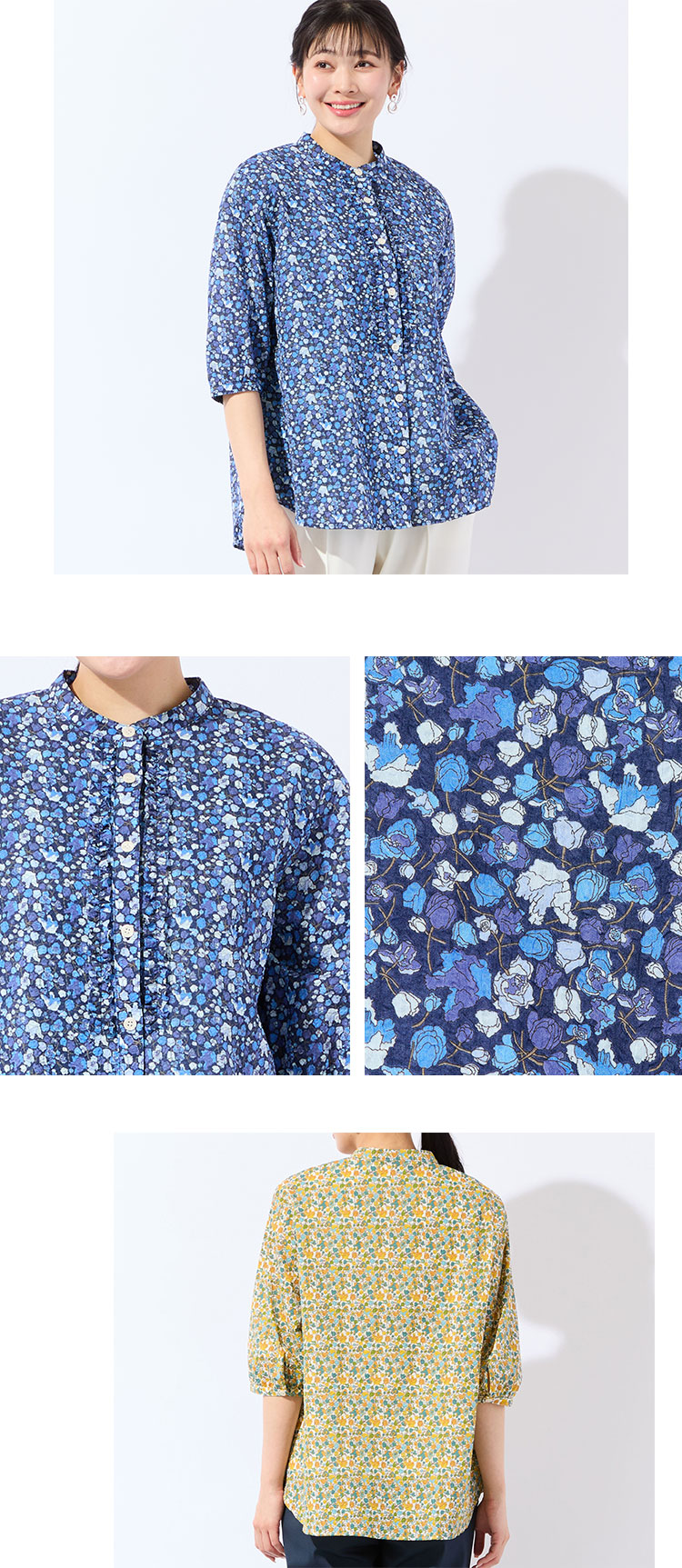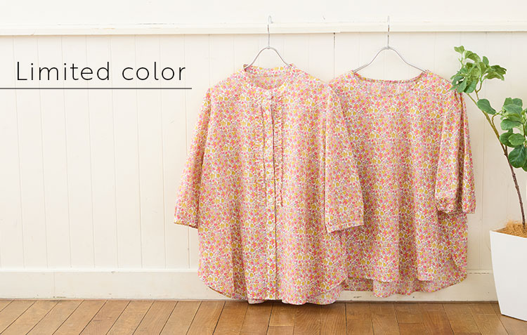 小花柄コットンフリルシャツ