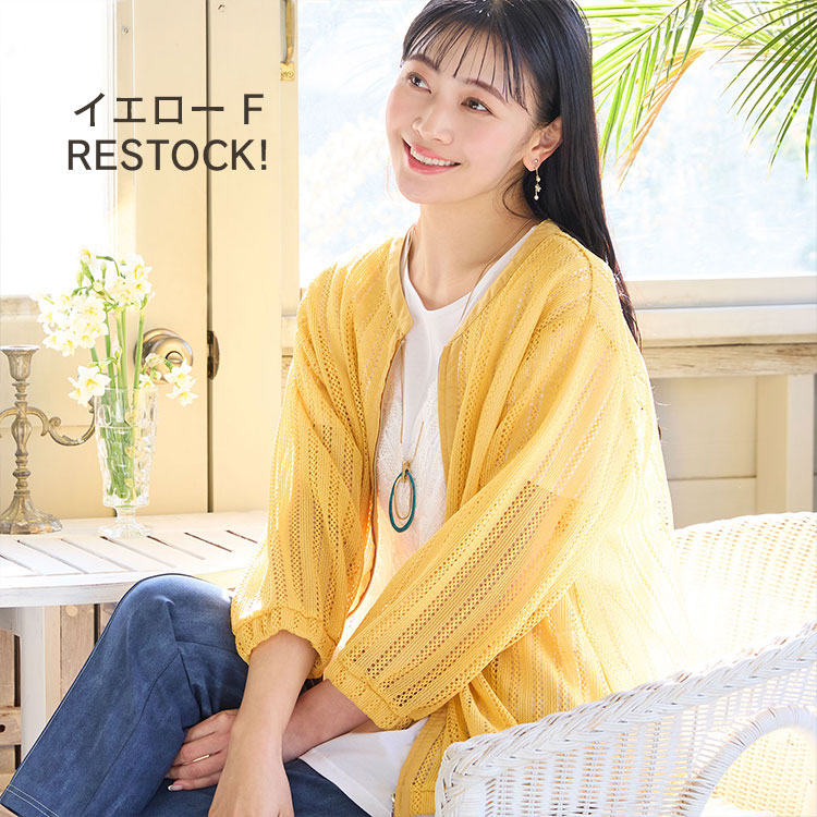 初夏のメインルックに使用されているレーシーブルゾンのイエローが再入荷!さっと羽織れてコーディネートが華やぐ一押しアイテムです。