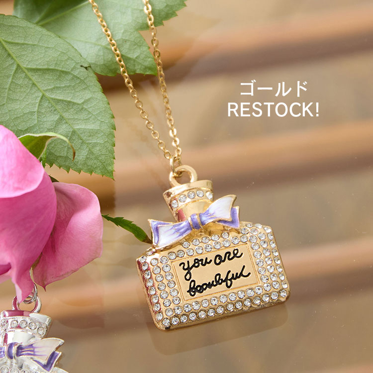 Flaneのアイコンである香水瓶をイメージしたペンダント。きらきらと輝く可愛らしい一本です。