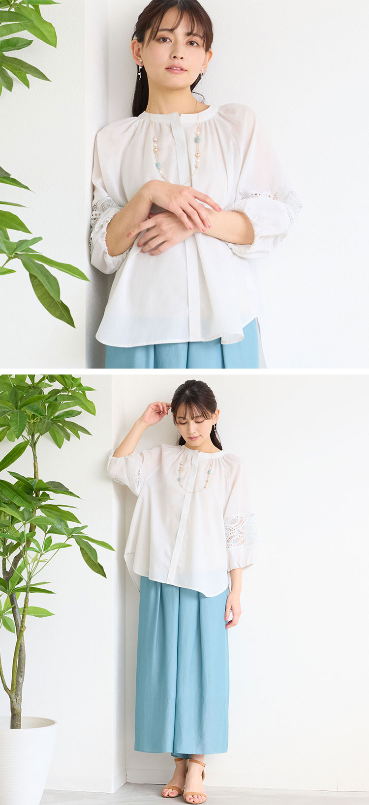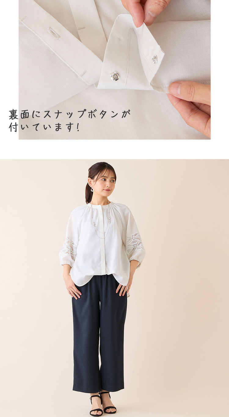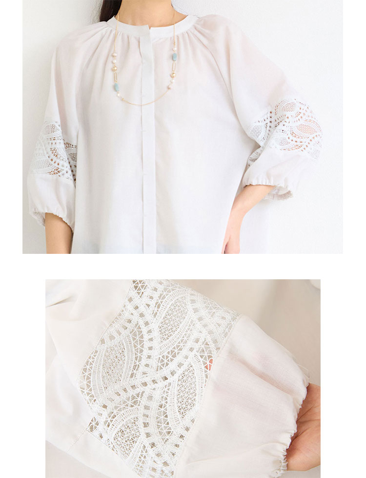レース接ぎボリュームスリーブブラウス