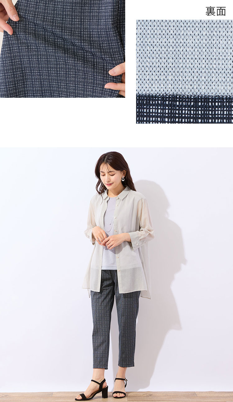 ツイード風の細かいチェック柄が上品なコーディネートに取り入れやすい柄パンツです。